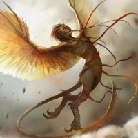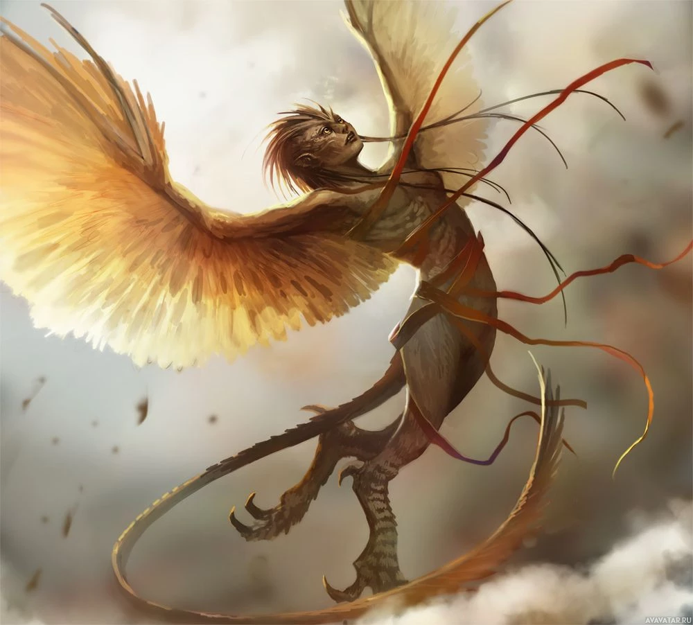 a fantastical creature, which appears to be a harpy. It is a mythical bird with the upper body of a human and has
