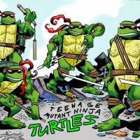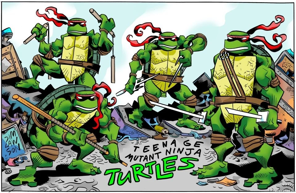 Ninja Turtles, which are anthropomorphic turtles named after Renaissance artists. They are wearing their