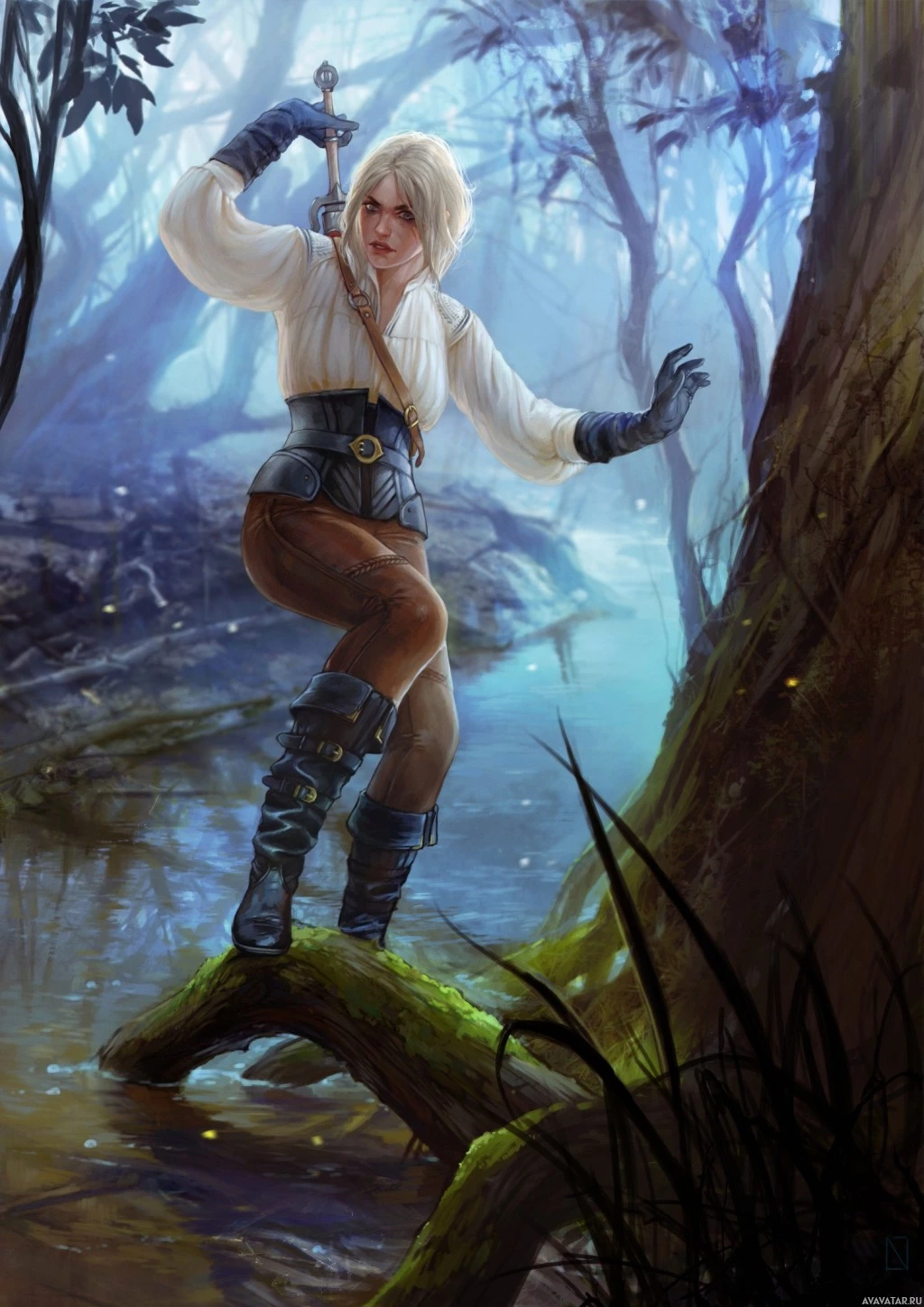 the video game "The Witcher 3: Wild Hunt." She is standing on