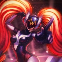 League of Legends" (LoL). This character is depicted as having long, flowing