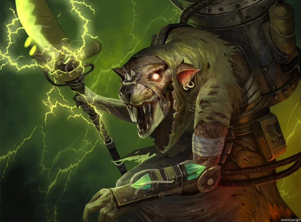 The image shows a fantasy-style depiction of a character that appears to be a humanoid rat. This creature is anthropomorphic, with human-like features such as arms and legs, but has