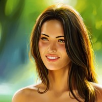 long hair, smiling at the viewer. She appears to be wearing