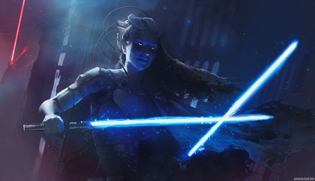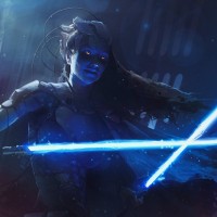 the Star Wars franchise. This individual appears to be wielding a lightsaber, which is a distinctive weapon associated with