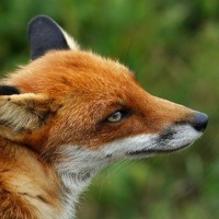 На снимке изображена красная лиса. Это в естественной среде, вероятно, травянистое поле или луг с некоторой зеленью вокруг. Лиса, кажется, смотрит вдаль со слегка открытым ртом, давая ему бдительное выражение. Его мех выглядит плотным и ухоженным, что характерно для лисиц, так как им нужно сохранять тепло в более холодном климате.