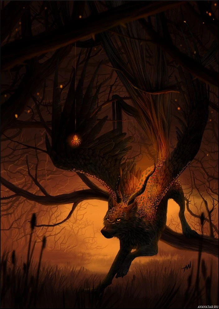 fiery texture on its body, reinforcing the mystical theme of the image.