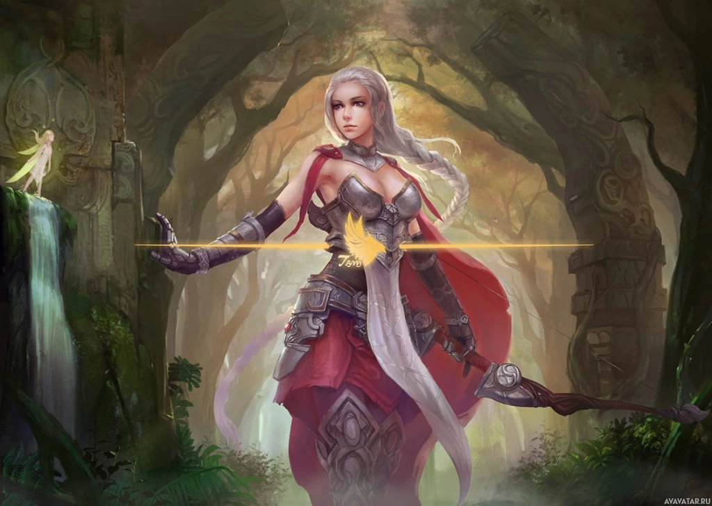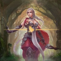 This is an image of a fantasy character, a girl with blonde hair and cloak, who appears to be from