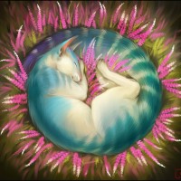 flower petals, with fantastical elements to create a magical and tranquil scene.