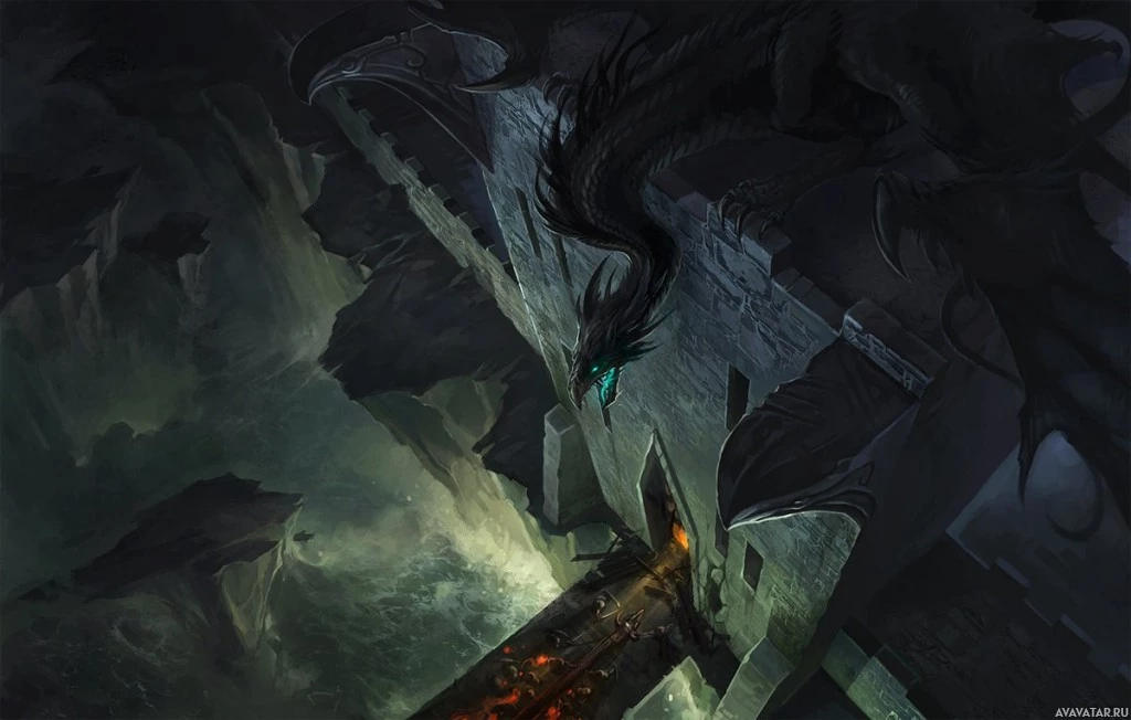 a dramatic effect, highlighting the dragon's menacing presence. The artwork style is reminiscent of high fantasy settings commonly found in books and