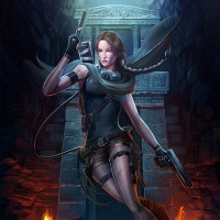 The image depicts a character that resembles Lara Croft, known from the Tomb Raider video