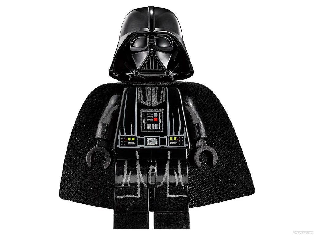 На картинке изображена фигура Лего персонажа Дарта Вейдера из франшизы «Звездные войны». Фигура изображена в его культовой черной броне с характерным шлемом и грудной пластиной.
