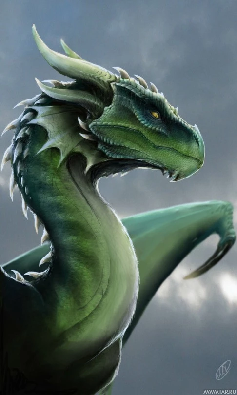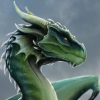 The image features a fantasy-style dragon. It appears to be a digital illustration with detailed coloring and shading that gives the dragon a majestic and somewhat intimidating appearance. The dragon is depicted in