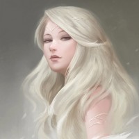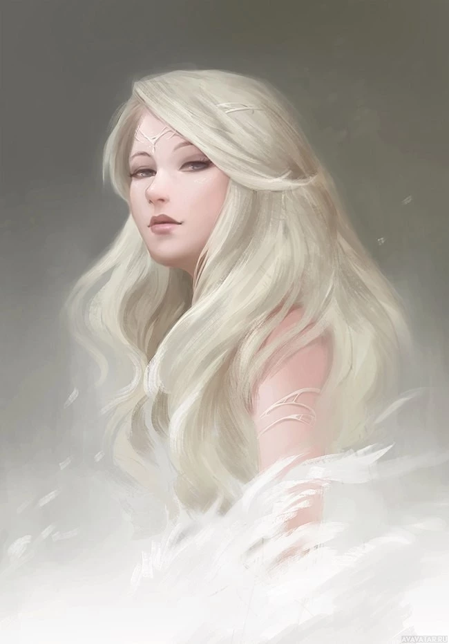 a young woman with long blonde hair and an ethereal, fairy-like appearance. She has an otherworldly look about her, possibly suggesting she is a fantasy or