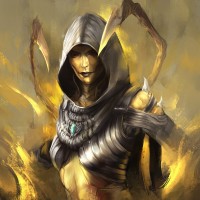 unique attire and accessories that include what appear to be insect-like elements or armor, which is consistent with her appearance in the game. The artwork shows