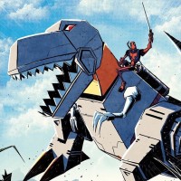 book cover featuring Deadpool, a character known for his unorthodox and humorous take on heroics. He is depicted riding atop a robotic dinosaur, which adds to the quirky
