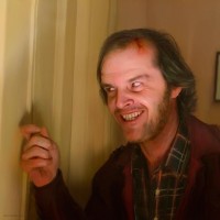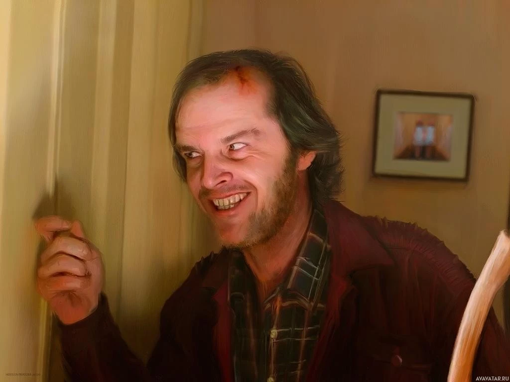 The image shows a person with a surprised or angry expression on their face, holding open a door. They have disheveled hair and are wearing
