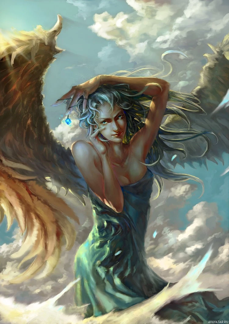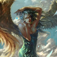 fantasy character that appears to be an angel. She has wings, which are a common trait associated with angels in