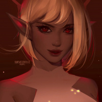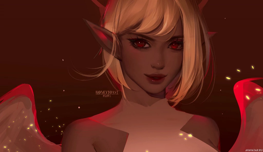 The image depicts a fantasy-themed character that resembles an elf. She has pointed ears,