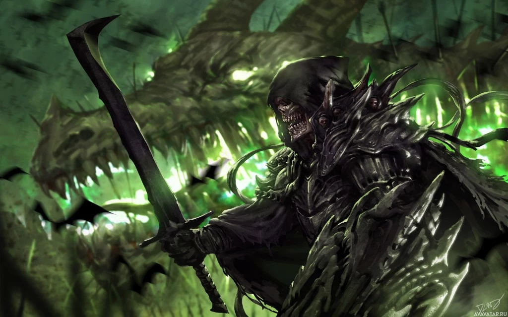 dark fantasy, possibly indicating an epic confrontation between the living and the undead.