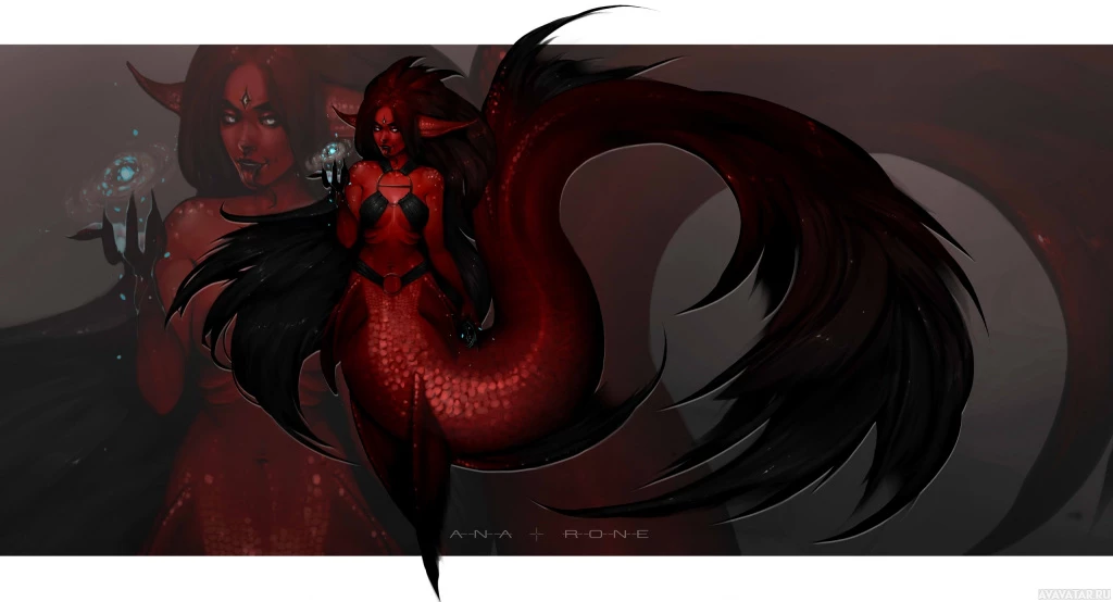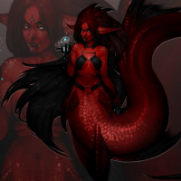a fantasy character that resembles a mermaid. It features a humanoid figure with elements of a fish-like tail and fins, which is characteristic of